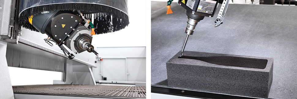Außerdem nutzen wir das 5-Achsen-Bearbeitungszentrum, um schnell und präzise Schaumstofffüllungen für Koffer und Organizer herzustellen.