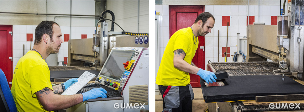 Herausnehmen des mit Wasserstrahl entsprechend den konkreten Daten ausgeschnittenen Teils