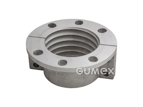 Aluminium-Flansch, kompatibel mit den Schläuchen 719AA. Es wird an der Außenseite des Schlauchs befestigt, dadurch wird ein kontinuierlicher Fluss des beförderten Mediums gesichert. Der Flansch hat keinen Kontakt mit dem beförderten Medium.