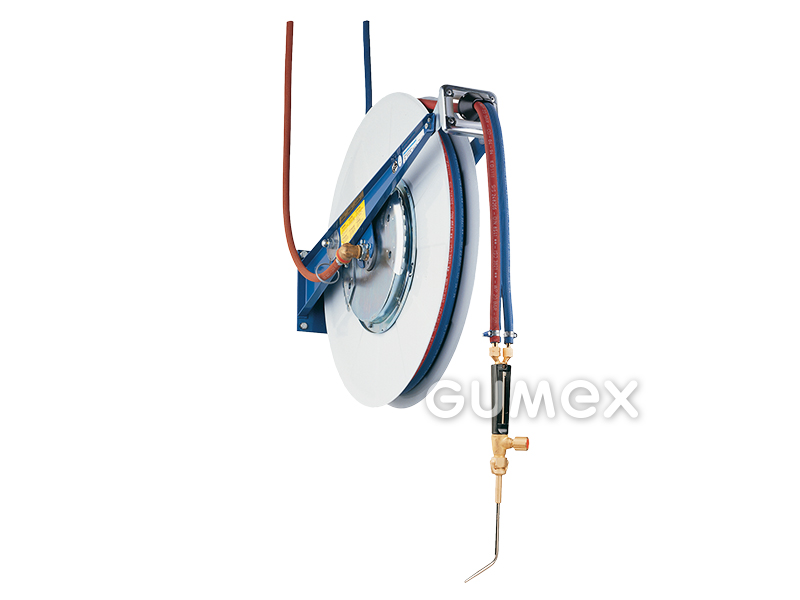 Schlauchaufroller NEDERMAN 876 für die Zwillingsschläuche TWIN vorgesehen (Sauerstoff/Acetylen, Sauerstoff/LPG), für Werkstätten mit hohen Sicherheitsanforderungen. Dank der offenen Bauweise lässt er sich sehr gut reinigen und warten. Das Aufrollen des Zwillingsschlauchs in einer Lage verhindert das Festklemmen des Schlauchs. Der Schlauchaufroller lässt sich einfach an Wand oder Decke anbringen.